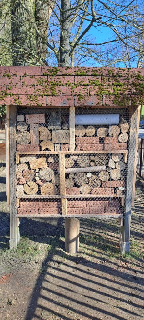 Nach dem im letzten Mai das Insektenhotel wieder instand gesetzt wurde, konnte es nun mit Unterstützung des Naturschutzbunds Deutschland e. V. und seiner Aktiven (Herr Ott, Frau Räde, Jugendgruppe des NABU) fertiggestellt werden. Mit viel Engagement, handwerklichem Geschick und Begeisterung für den Naturschutz entstand ein neuer Lebensraum.